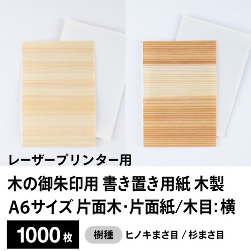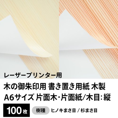 木の御朱印用 書き置き用紙 木製(片面木・片面紙 / 木目:横)レーザープリンター用A6サイズ100枚