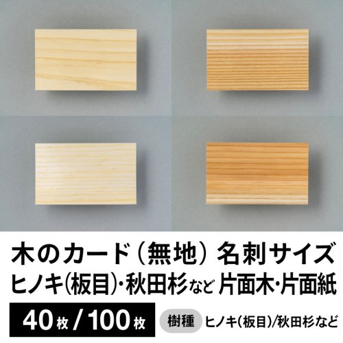 木のカード(無地)木製台紙 / 名刺サイズ / 片面木・片面紙 / ヒノキ(まさ目)