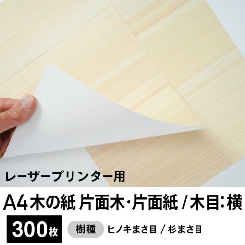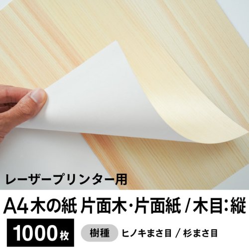 木の紙(片面木・片面紙 / 木目:横 / ヒノキまさ目、杉まさ目)レーザープリンター用A4サイズ1,000枚