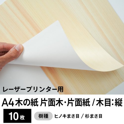 木の紙(片面木・片面紙 / 木目:縦 / ヒノキまさ目、杉まさ目)レーザープリンター用A4サイズ4枚