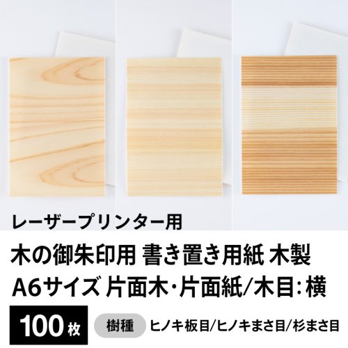 木の御朱印用 書き置き用紙 木製(片面木・片面紙 / 木目:横)レーザープリンター用A6サイズ300枚