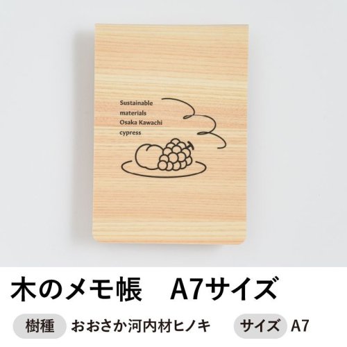 おおさか河内材ヒノキの木の紙の表紙で綴じた、木の和綴じメモ帳。