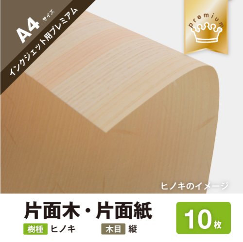 木の紙(片面木・片面紙 / 木目:横 / ヒノキまさ目、杉まさ目)エプソン製/ブラザー製/キヤノン製家庭用インクジェットプリンター用A4サイズ10枚