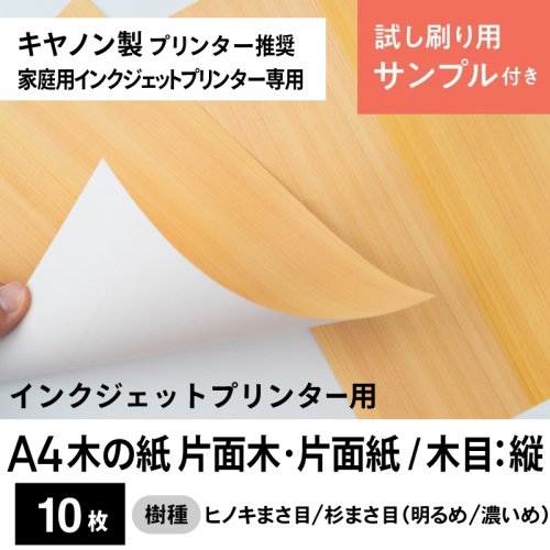 木の紙(片面木・片面紙 / 木目:縦 / ヒノキまさ目、杉まさ目)キヤノン製家庭用インクジェットプリンター用A4サイズ4枚