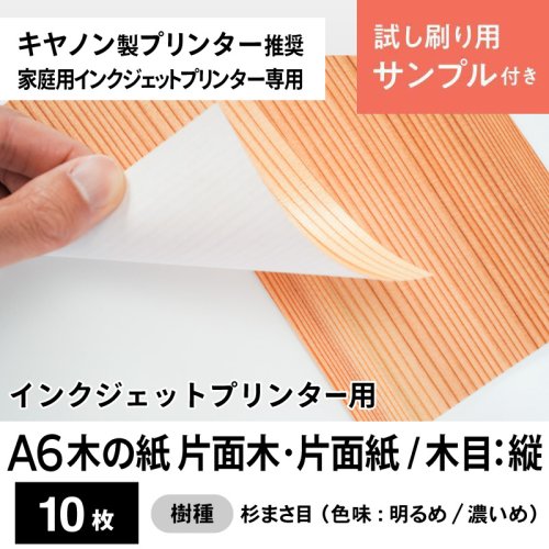 木の紙(片面木・片面紙 / 木目:縦 / 杉まさ目)キヤノン製家庭用インクジェットプリンター用 はがきサイズ10枚