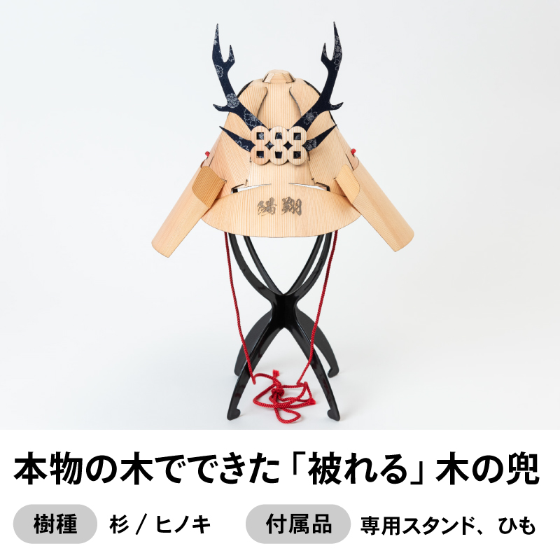 | 内容物 | 木の兜本体、専用スタンド、ひも |