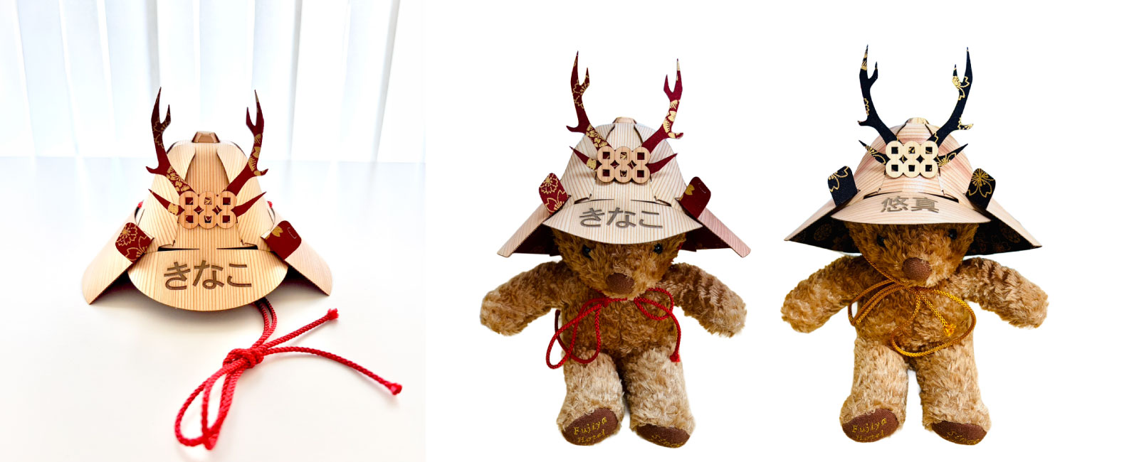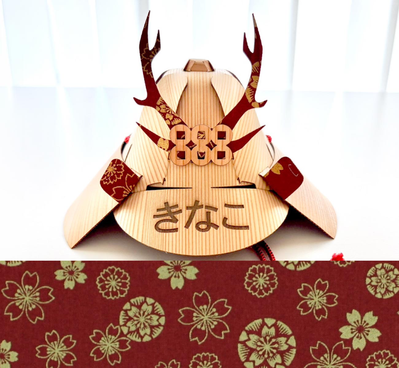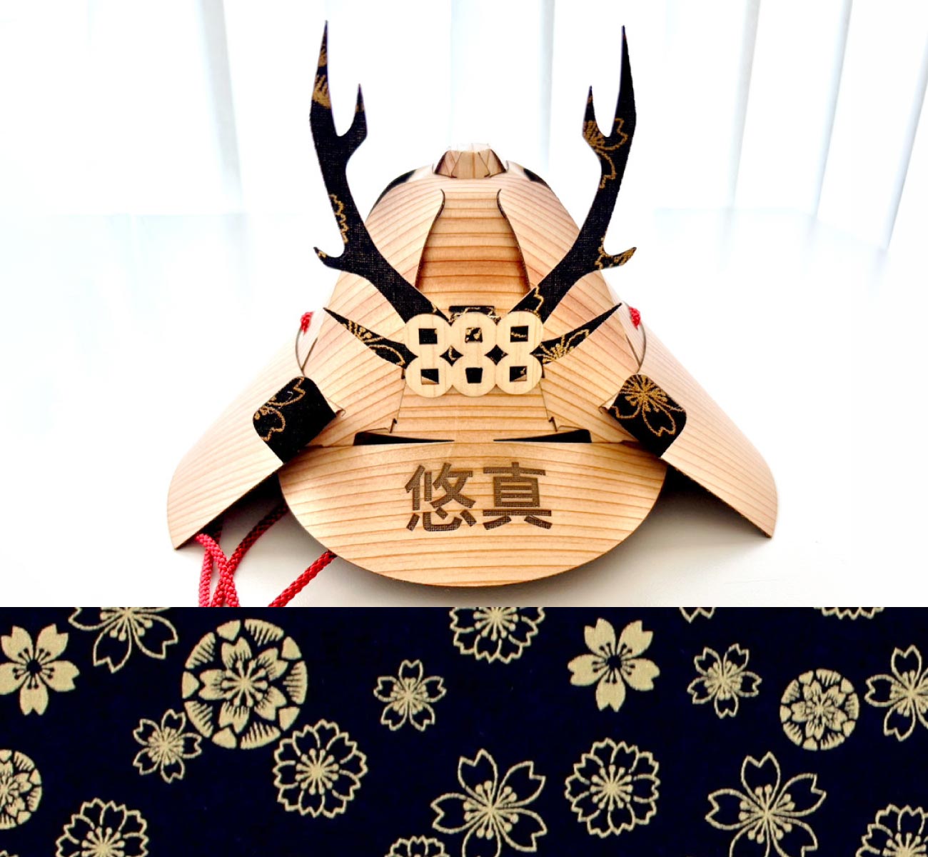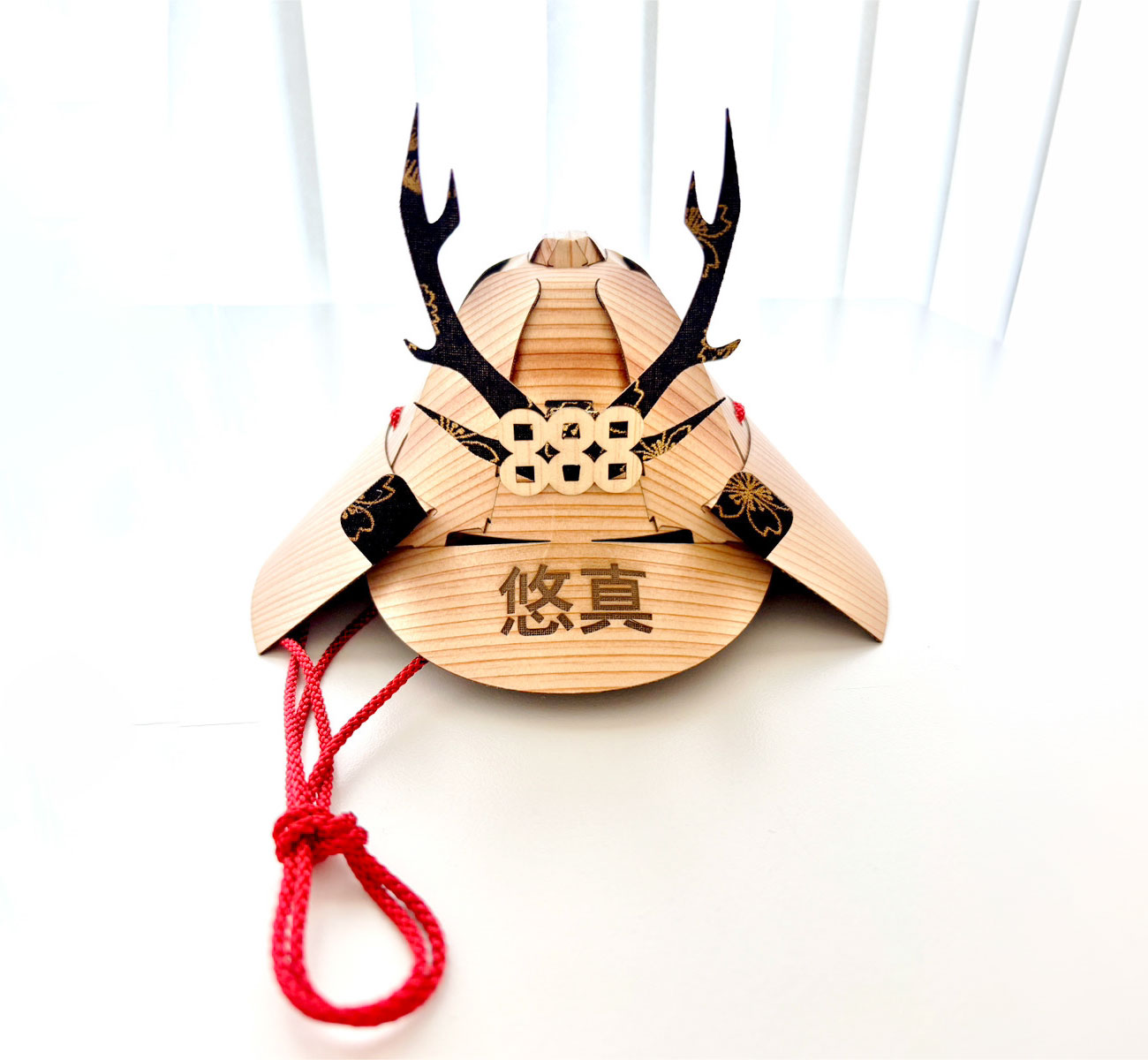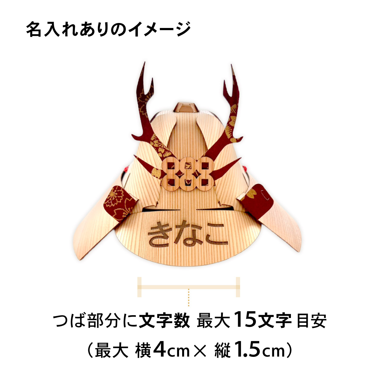 名前やロゴ等をお入れすることが可能です。オリジナルの木の兜ミニをお作りいただけます。